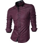 Jeansian Men's Casual Dress Shirts Fashion Desinger Stylish Long Sleeve Slim Fit 8371 WineRed
